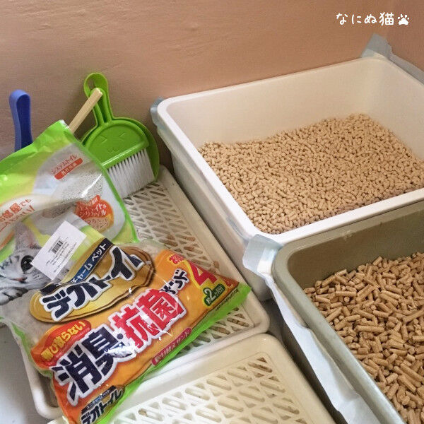 折しも「なにぬ猫んち。」でトイレのエピソードが続いているので、そんな我が家の猫トイレの変遷とDIYをまとめてみます。