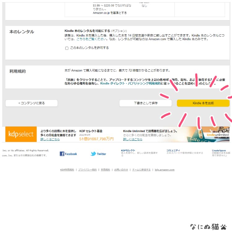 校了もすんで勢いにのってkindleの登録申請に進んだんですね。