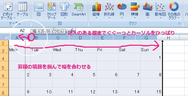 これでカレンダー部分はほぼ出来上がったので画像を挿入します。