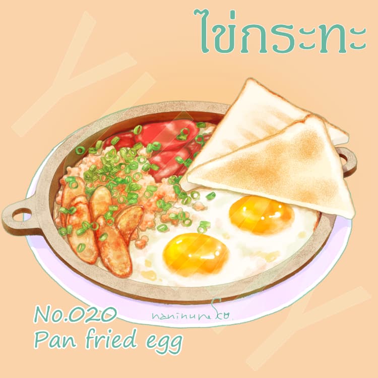 ソーセージや目玉焼きに添えられたトースト、タイ料理らしからぬ取り合わせですがタイ料理です。